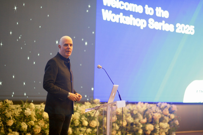 Dr. Nik Chavannes presenting Z43's opening address at the 2025 Korea workshop.