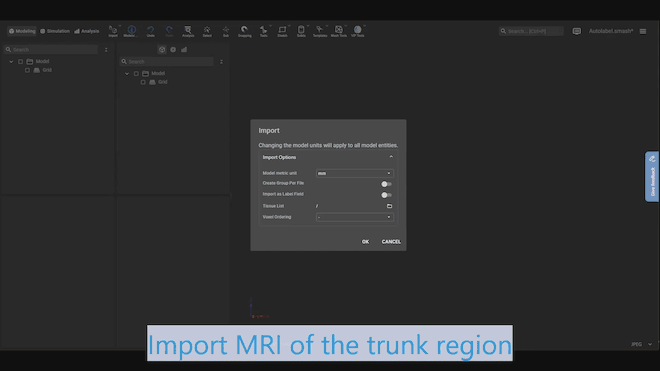 In Sim4Life.web V9.2, users can apply AI-powered segmentation to medical images (either MRI or CT) of the entire trunk region and quickly generate corresponding 3D models without the need for manual segmentation. The tool can segment all major internal organs, vertebrae, and other bones, as well as several individual arteries, veins, and muscles. Upon assigning tissue properties, the models are ready for simulations.